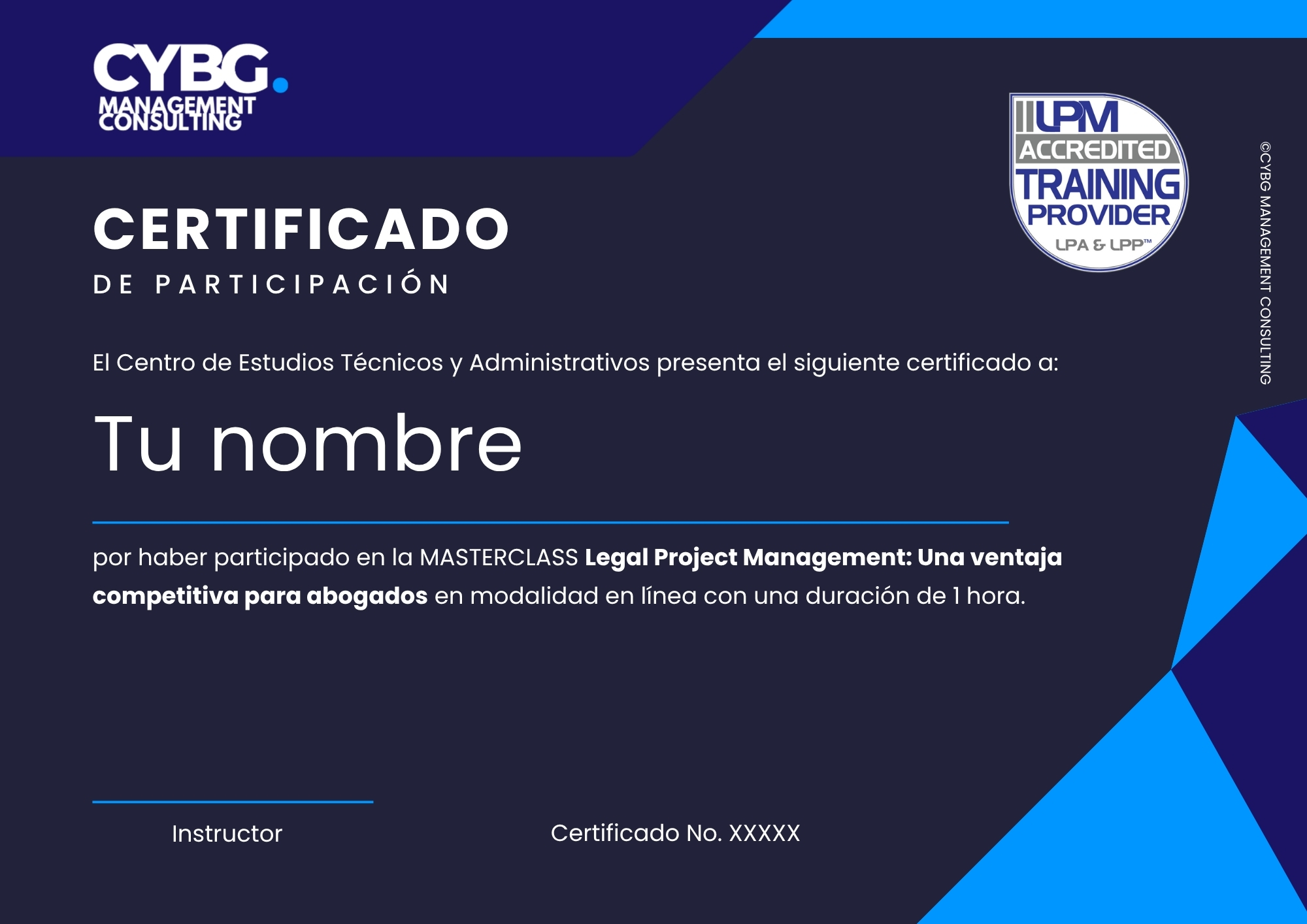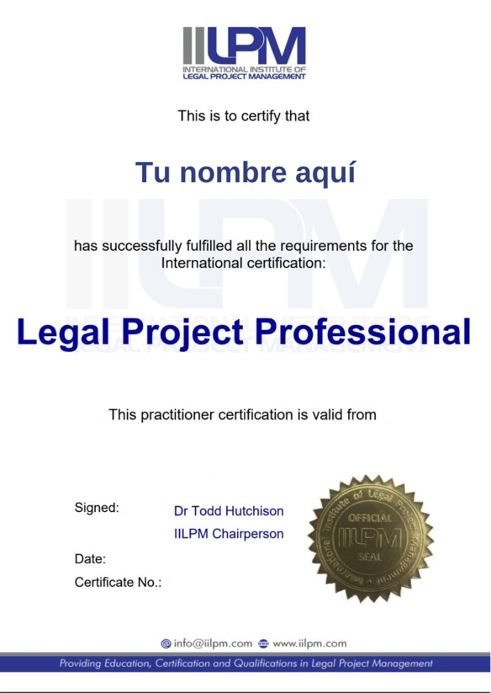 - Obtener la certificación internacional Legal Project Professional (LPP) emitida por el IILPM.